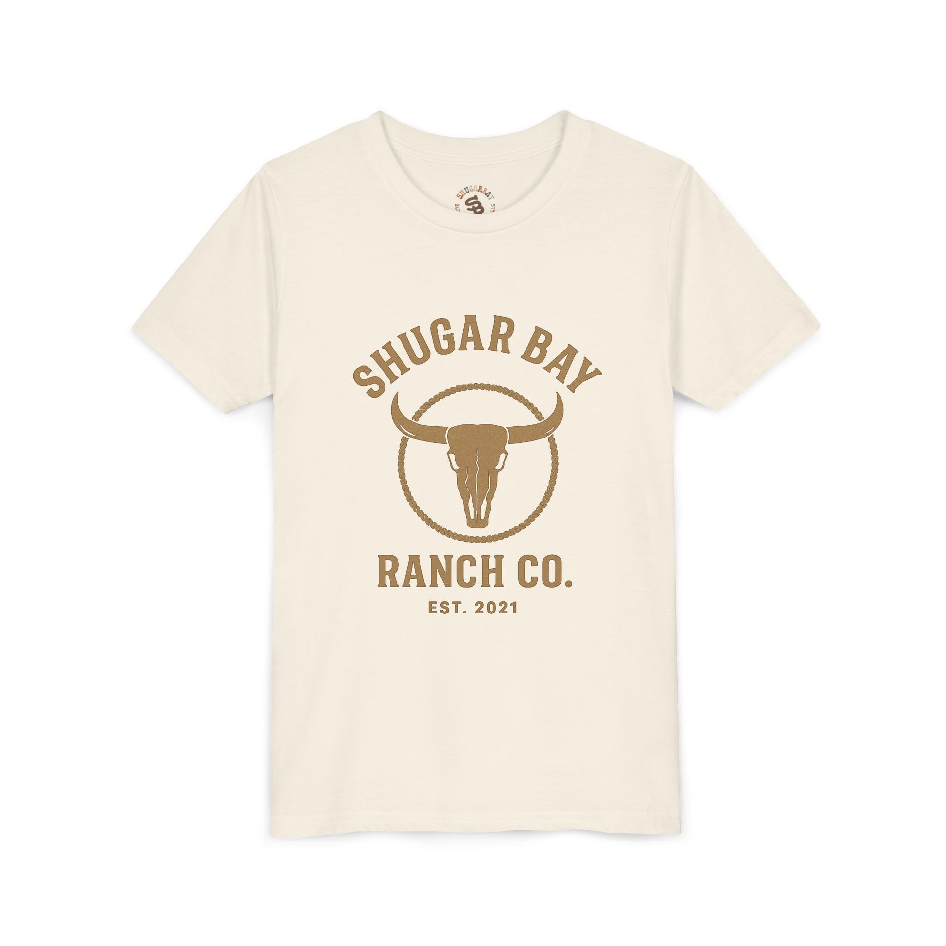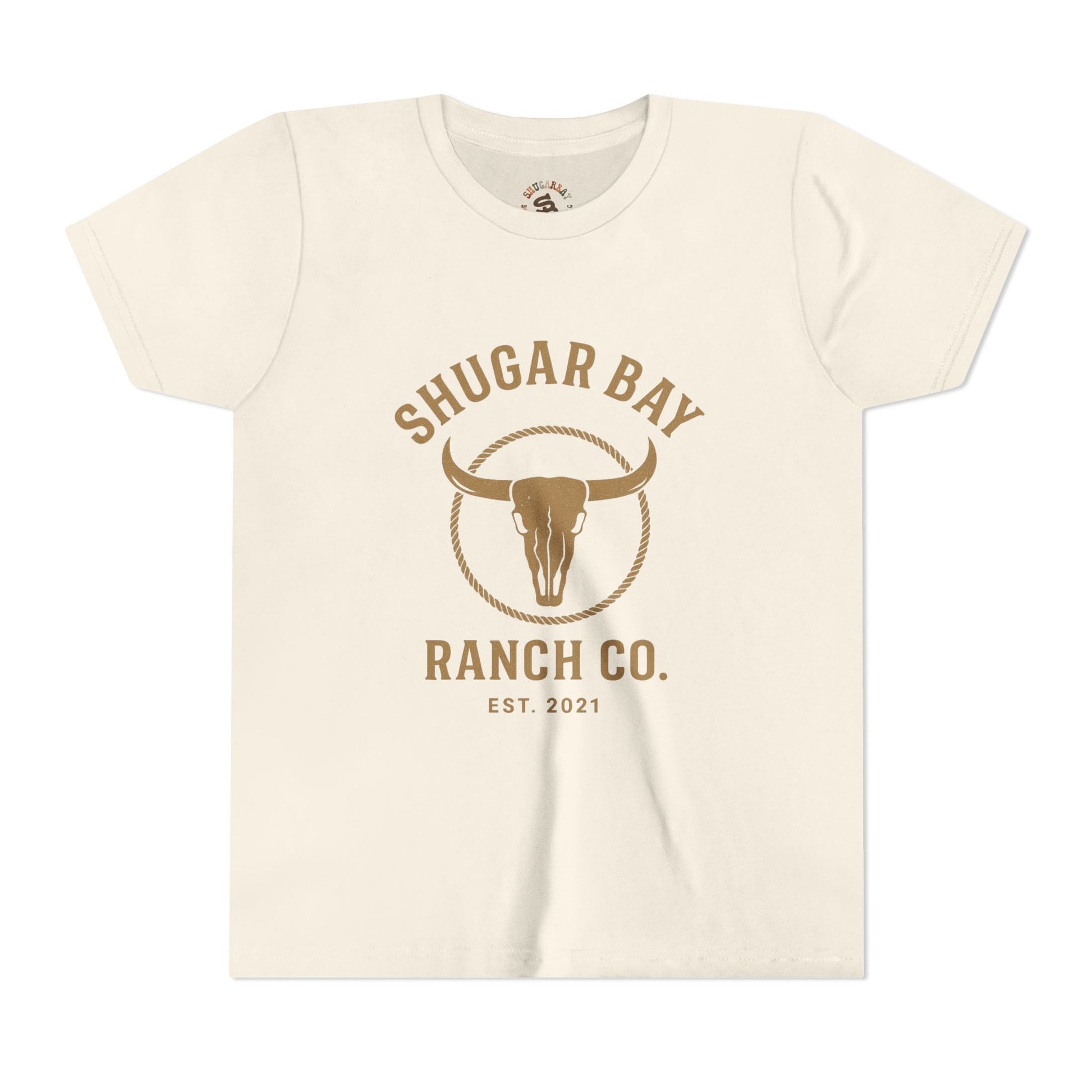 The ShugarBay Longhorn Skull Youth Tee features a bold longhorn skull graphic paired with the ShugarBay Ranch Co. branding, giving little ranch hands a clean, classic Western look they can wear anywhere. Soft, lightweight, and durable, this tee keeps up with busy kids from school to chores to rodeo weekends.